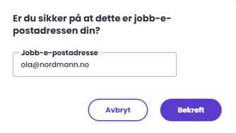 Det dukker da opp en boks der du bekrefter at e-postadressen er riktig. Sjekk gjerne dette ordentlig før du trykker "Bekreft".