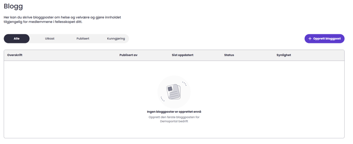 På startsiden for blogger trykker du nå på knappen "+ Opprett bloggpost" på høyre side for å komme i gang med din første bloggpost.