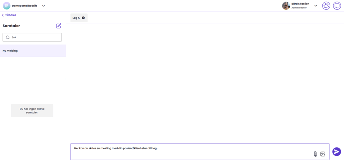 Når en pasient/klient eller et lag er valgt, kan du starte dialogen eller dele filer, bilder, linker osv. Dette gjør du i "meldingsfeltet" helt nederst i chat-vinduet.