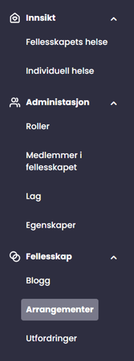 Du må først navigere til "Arrangementer" under fanen "Fellesskap" i menyen.